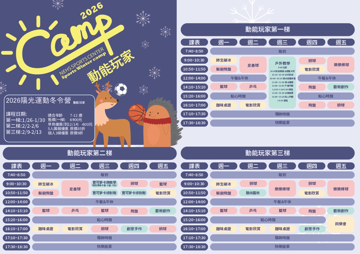 (限綜合運動營課程 ※幼兒探索、動能小玩家、動能玩家、玩創小尖兵、雷射繪畫師)