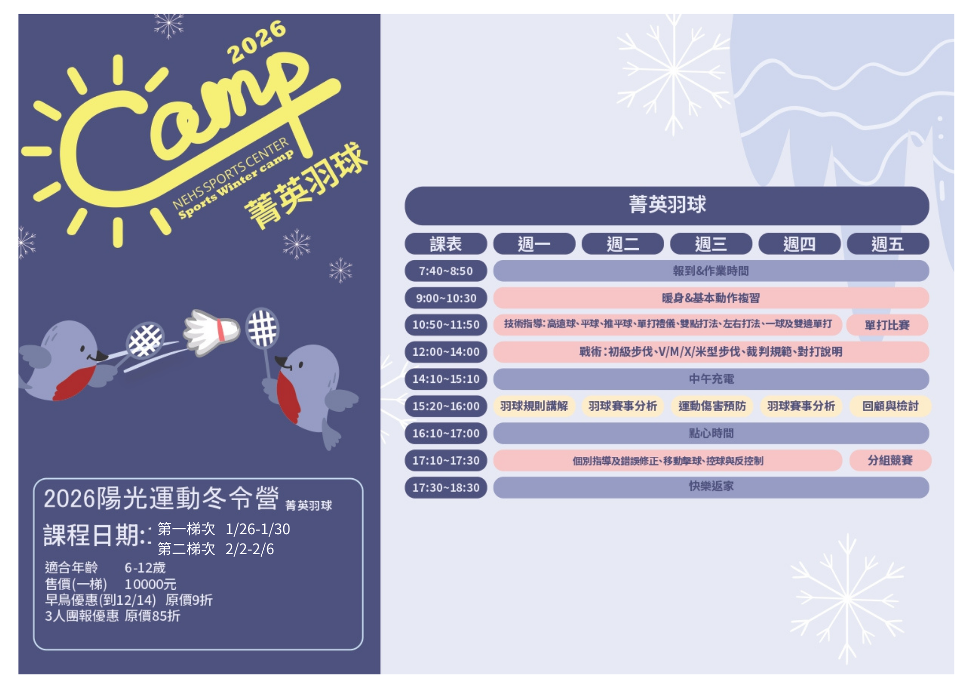第 2 梯(2/2~2/6) 7:30~18:00 5 堂(日)
