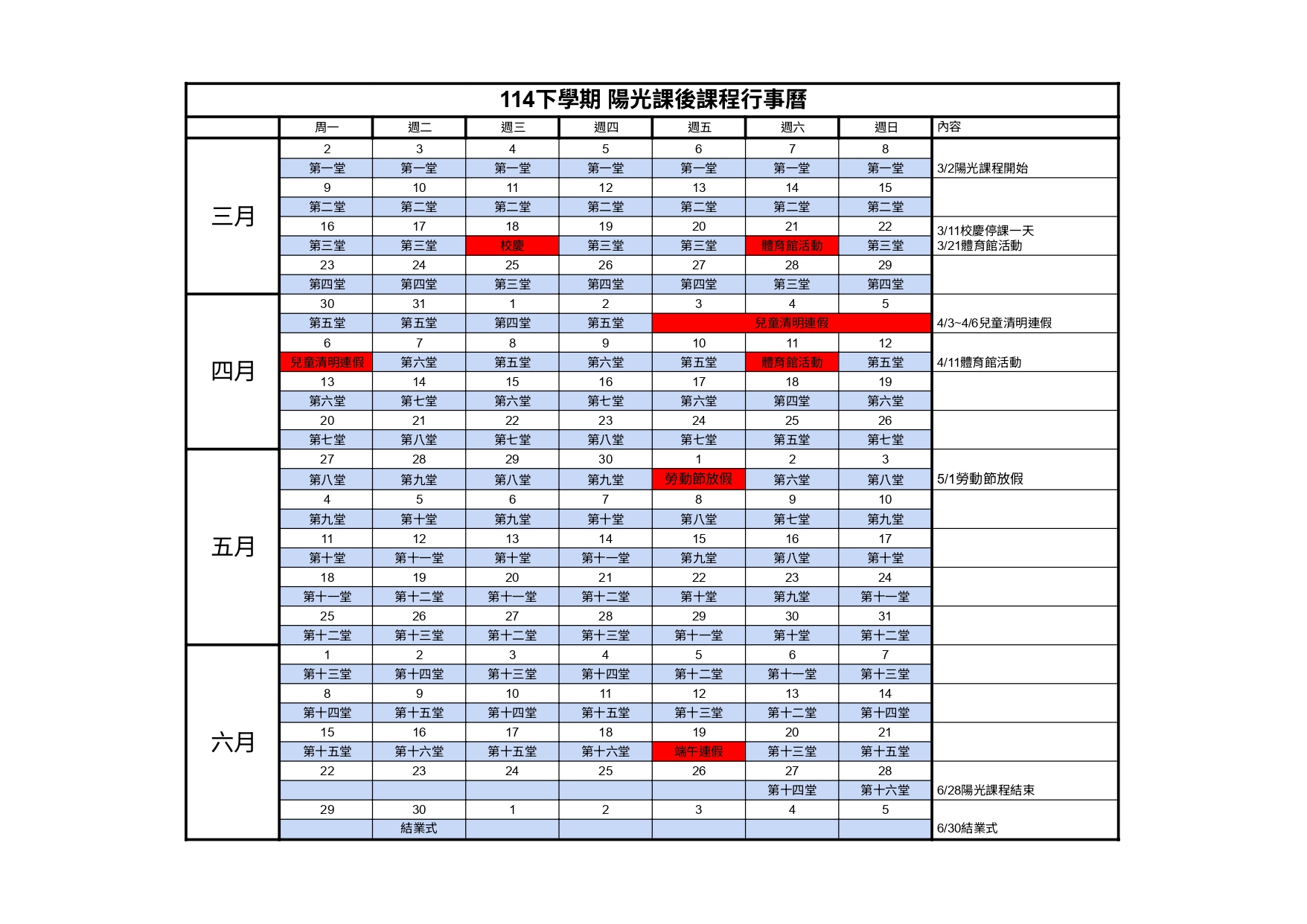 • 課程介紹與課表(請詳閱)