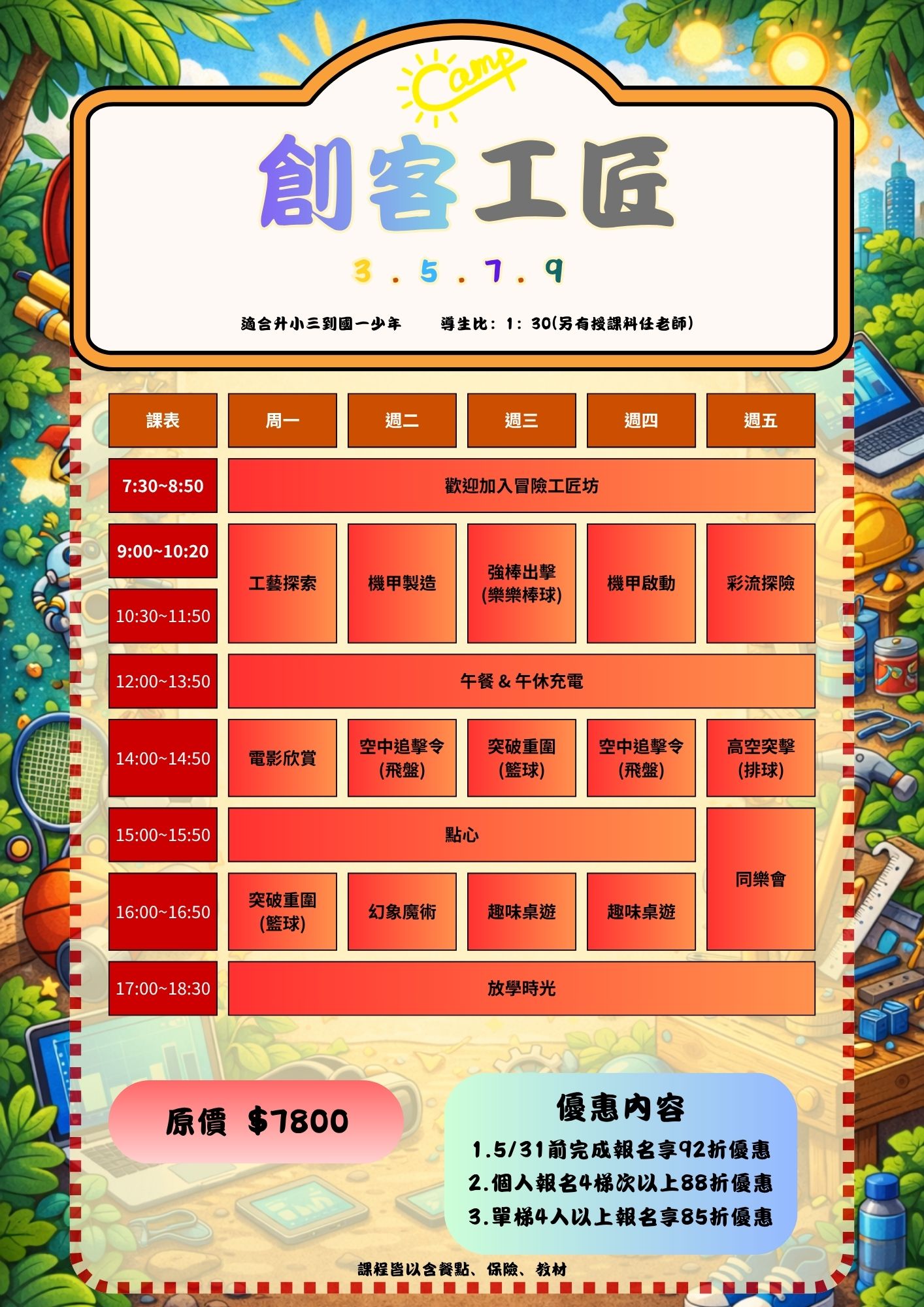 home 首頁 navigate_next 線上報名 navigate_next 2026 陽光夏令營 navigate_next 綜合冒險家 navigate_next 創客工匠